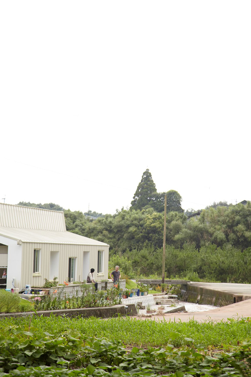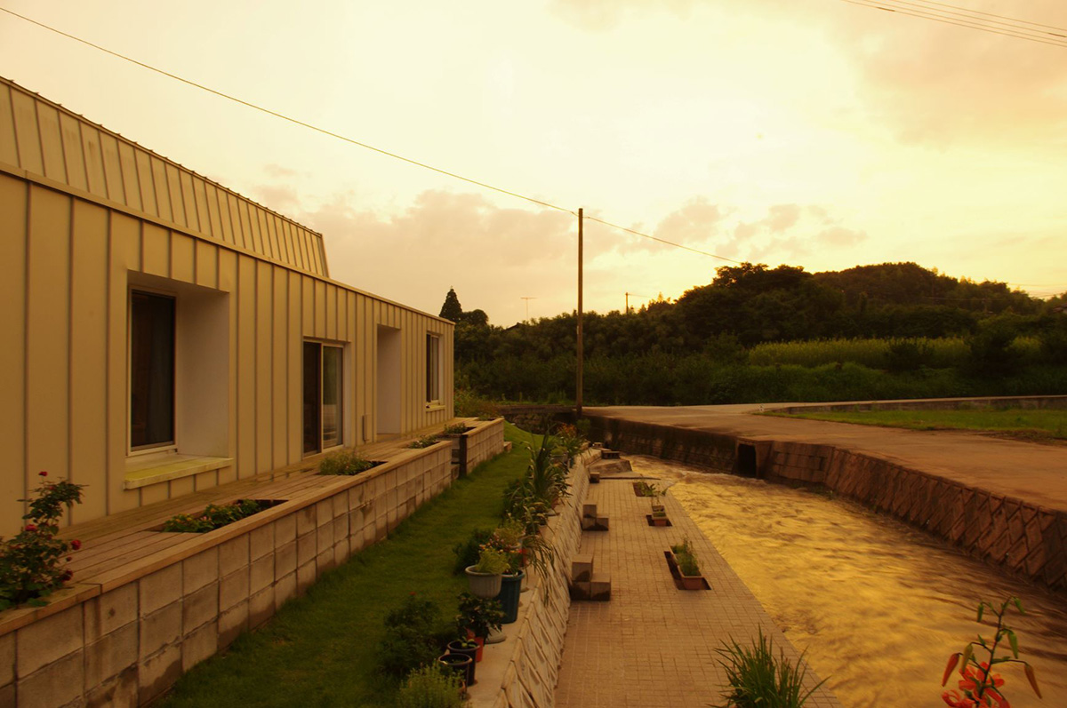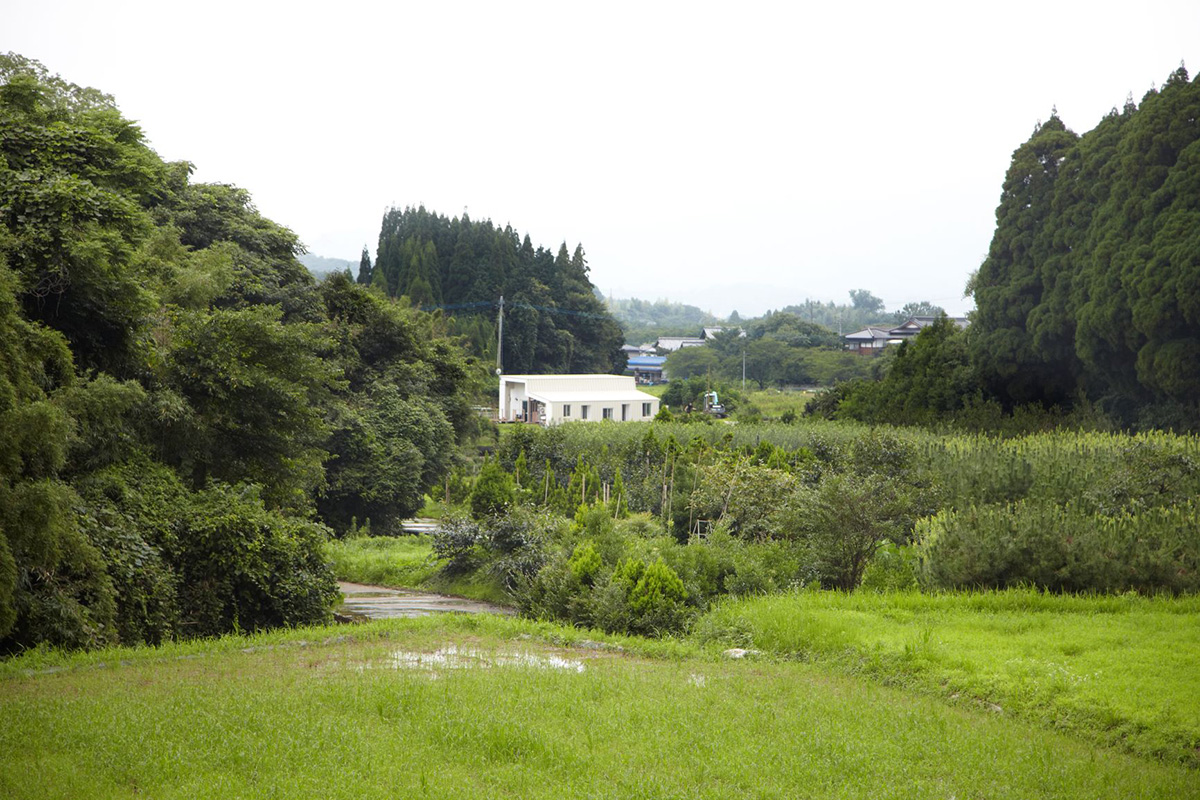 広がる田畑に護岸で形成された小川沿いの場所に敷地はある。
