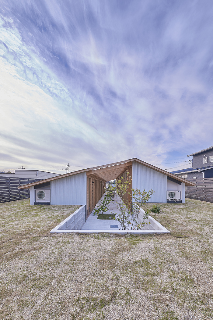 低い軒により周辺環境と緩やかにつながる。