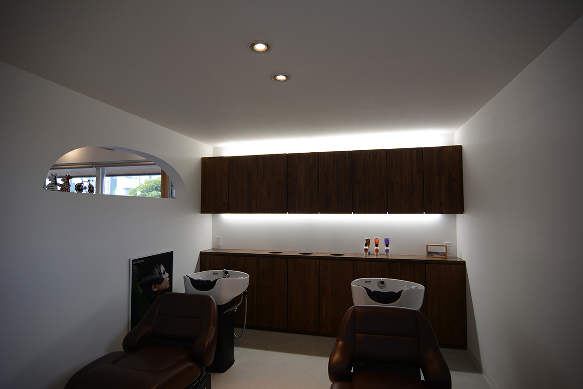 This is a newly built hair salon in Kashima Town, Kumamoto Prefecture. We wanted to create a beauty salon where you can relax and play.