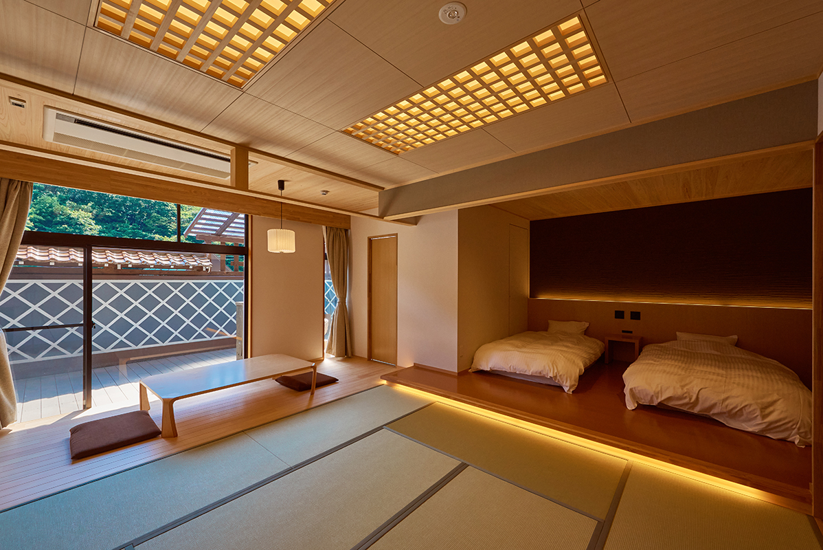 これまで日帰り利用も受け入れてきた温泉宿であるが、宿泊者の利用を中心とすることで生まれた空間的余白を活用し、贅沢なゆとりにより非日常を楽しめる旅館とした。