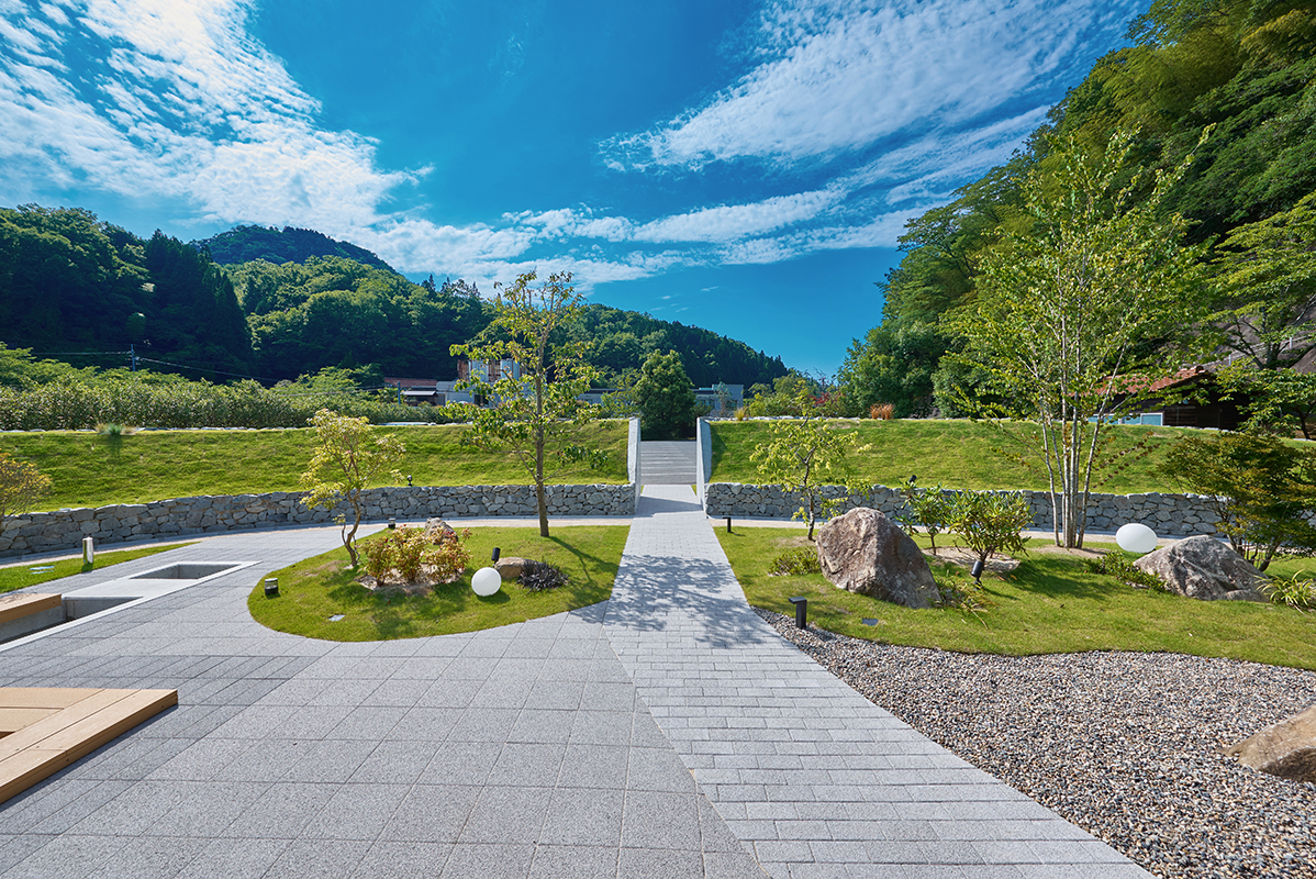 島根・浜田の原風景である山間部の棚田の石積みと石州瓦の屋根の風景をモチーフにした外観は建物に意味を一つ増やし、地域のとの繋がりを感じさせるものとした。